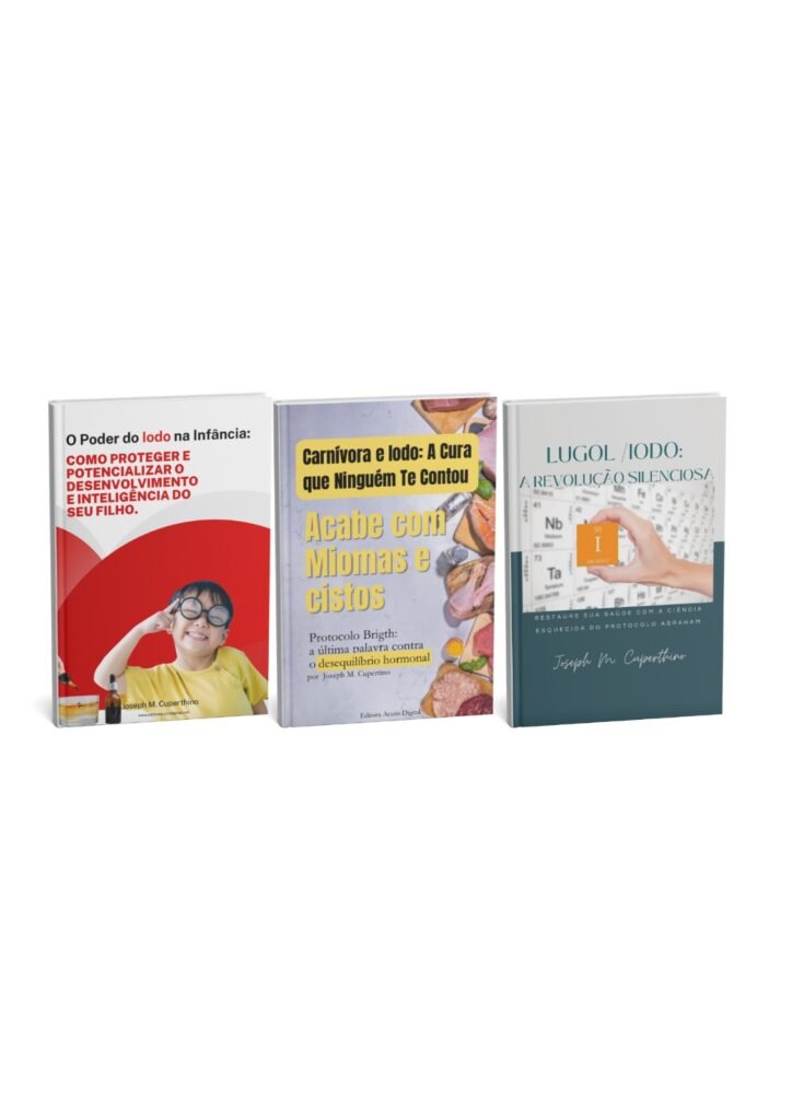 Este kit reúne 3 eBooks revolucionários para sua saúde: aprenda a usar o Lugol para revitalizar tireoide, combater cistos e eliminar fadiga; domine a dieta carnívora com iodo para reverter miomas, SOP e inflamações; e potencialize o desenvolvimento infantil com doses seguras que aumentam foco e imunidade. Com protocolos científicos, casos reais e guias práticos